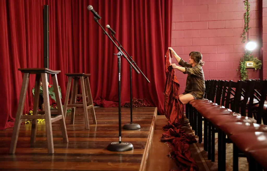 Shows are booked throughout the latter half of April, with several already scheduled for May and June. The venue will open quietly April 10 with “Death Medicine,” a new open mic series focused on death and grief, followed by an unveiling and open house April 17 and an official reopening open mic April 18.
